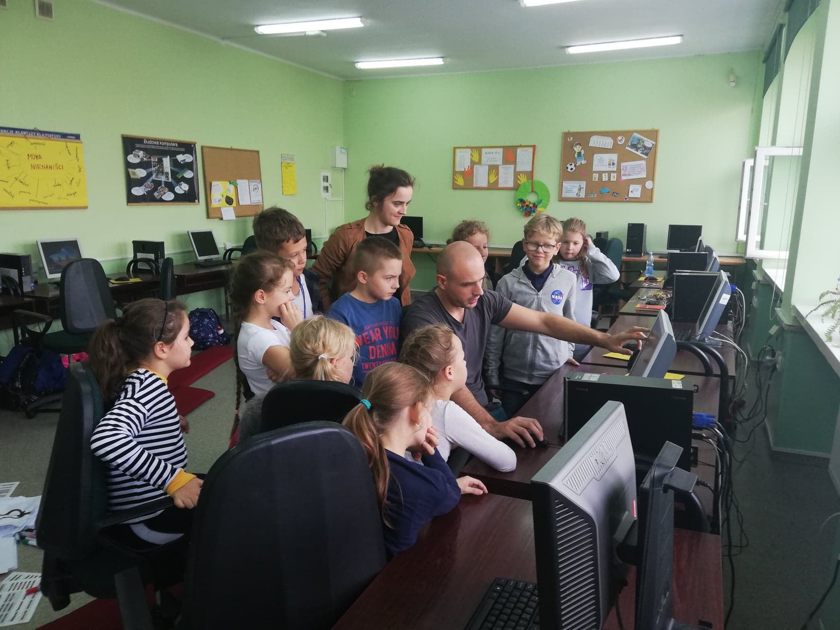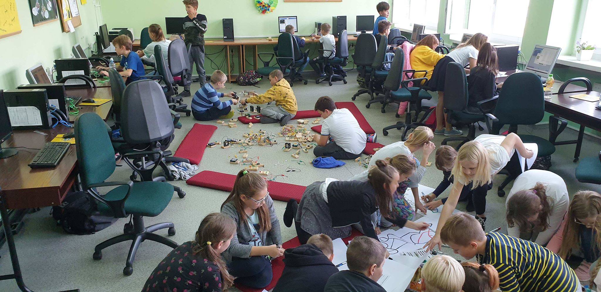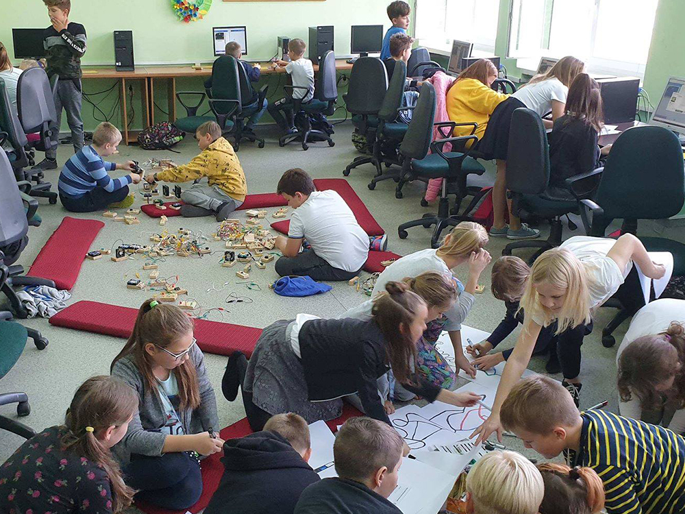 Dla młodszych uczniów przeprowadzono zajęcia, które były wprowadzeniem do tematyki programowania przy wykorzystaniu robotów Ozobot i mazaków. Podczas zajęć uczniowie programowali roboty poprzez rysowanie kolorowych linii na kartce papieru, po których poruszał się robot, przez układanie kolorowych bloczków programu. Kody oparte są na popularnym graficznym interfejsie programistycznym, który jest przystępnym wstępem do dalszej nauki programowania. Organizowane zajęcia mają na celu rozbudzenie w uczniach potrzeby szukania nowych ścieżek rozwoju, kreatywnego wykorzystywania możliwości jakie dają im nowoczesne technologie. Zajęcia mają pokazać uczniom, że nauka programowania może być fascynująca. Dzięki zajęciom chcieliśmy przełamać stereotypowe myślenie o kodowaniu, jako dziedzinie trudnej i wymagającej dużego doświadczenia. Wszystko zorganizowano w najbardziej przystępnej dla dzieci formie, czyli nauce połączonej z zabawą. Dzięki tej formie dzieci czerpią najwięcej integrując się jednocześnie z rówieśnikami. Dużym zainteresowaniem wśród dzieci cieszyły się również zajęcia z programowania w bezpłatnym programie Scrach.
