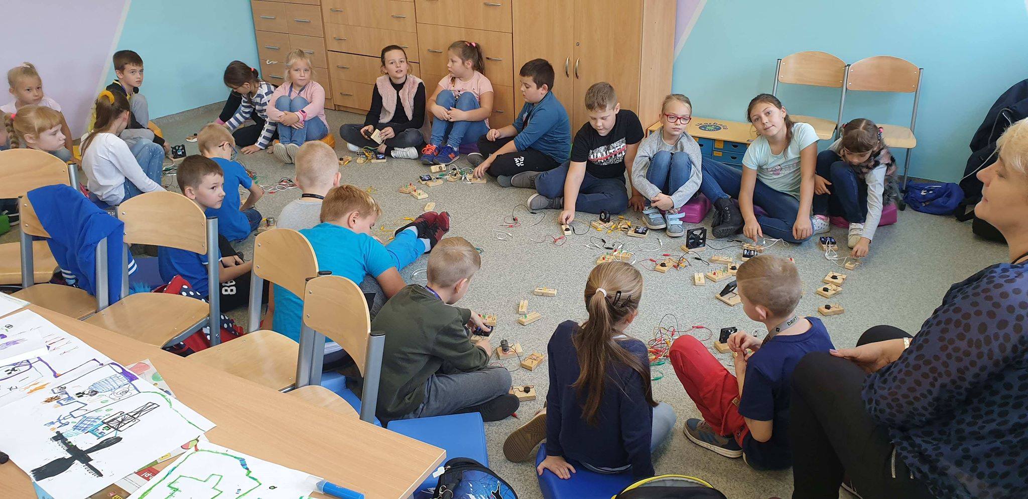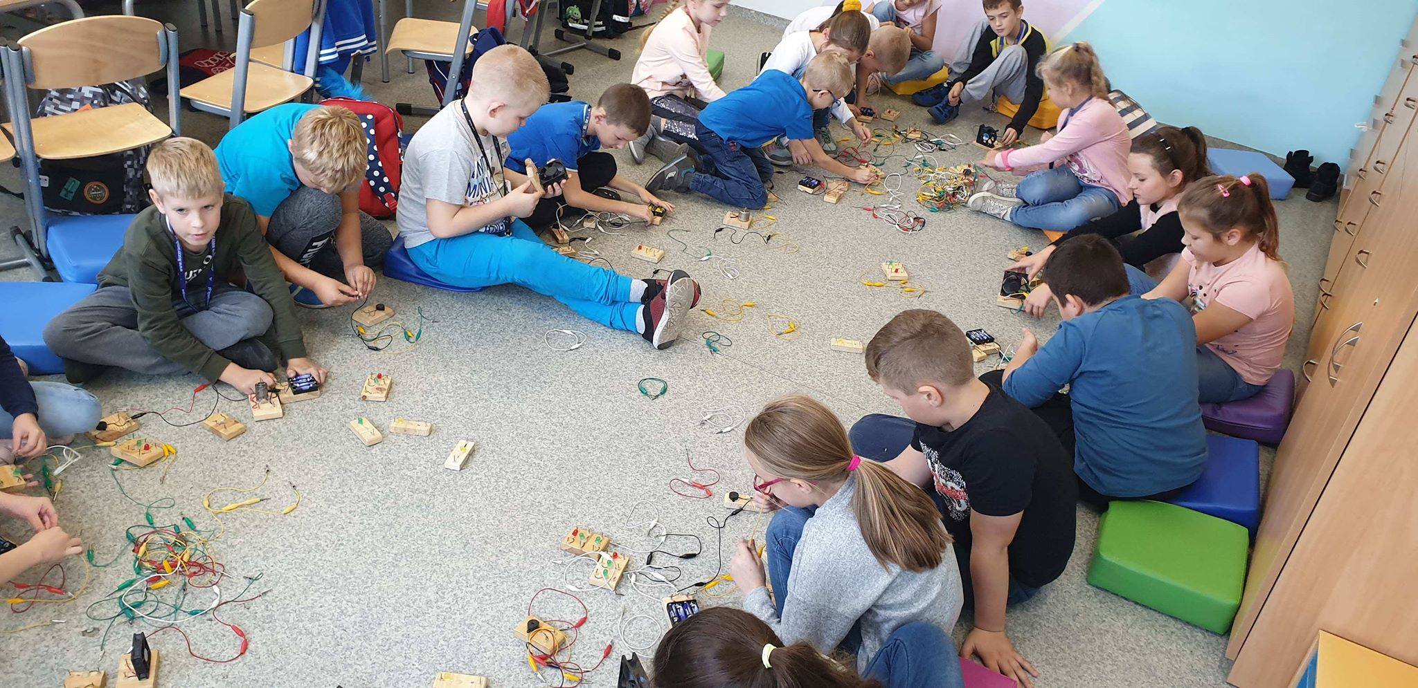 Dzięki darowiźnie, którą otrzymało nasze Centrum z Fundacji Tesco, instruktorzy przeprowadzili też w Szkole Podstawowej nr 8 w Krotoszynie zajęcia z budowania obwodów elektrycznych ze specjalnie przygotowanych klocków elektrycznych – uczyli ich zasad działania prądu, alternatywnych źródeł energii i bezpieczeństwa w praktyce.